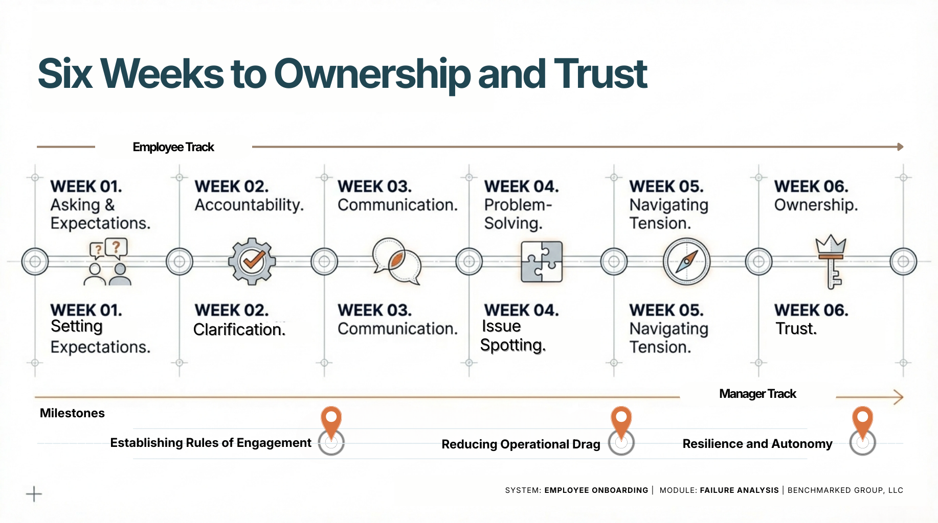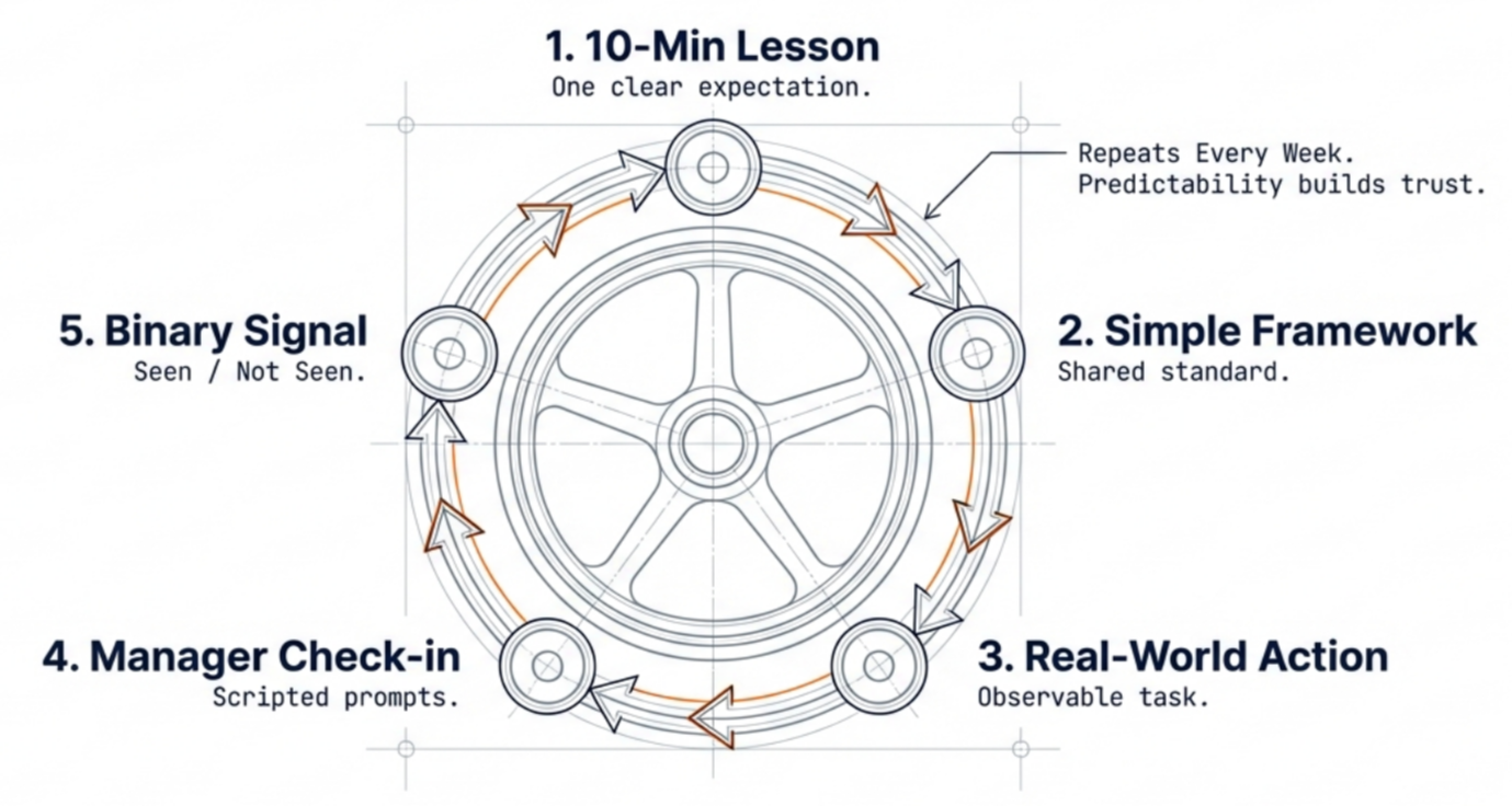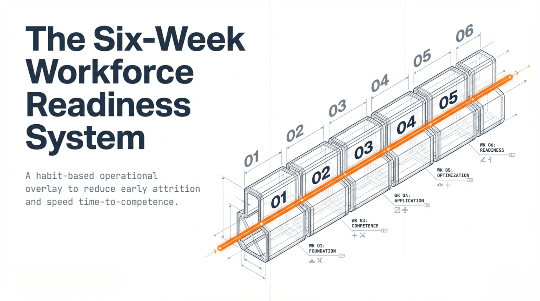 A habit-based workforce readiness system designed for organizations tired of early ramp drag and preventable churn.